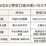 - 【超初心者向け】NISAと特定口座の使い分け方|FPがわかりやすく解説すず 「NISA口座って非課税になるからお得って聞きますけど、特定口座も必要なんですか?どっちを使えばいいのか迷ってしまって…。」 ちはや@FP 「いい質問だね。実はNISAと特定口座は『どちらか一方だけ』ではなく、両方を上手に使い分けるのがおすすめなんです。今日はその理由と考え方をわかりやすく解説しますね!」