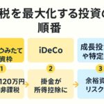 - 【超初心者向け】節税を最大化する投資の順番|FPが教える王道パターンすず 「投資って始めたいんですけど、NISAとかiDeCoとか色々あって…結局どれからやればいいんですか?順番が分からなくて…」 ちはや@FP 「いい質問だね。投資には“節税効果”が大きく関わってくるんだ。実は、ただ投資を始めるよりも、節税メリットを最大化できる順番で始めた方が効率的に資産を増やせるんだよ。」
