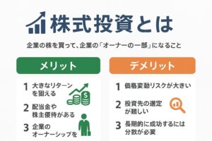• 個別株投資:特定の会社(例:トヨタ、Appleなど)を自分で選んで購入する → 成功すれば大きな利益、失敗すれば大きな損失。