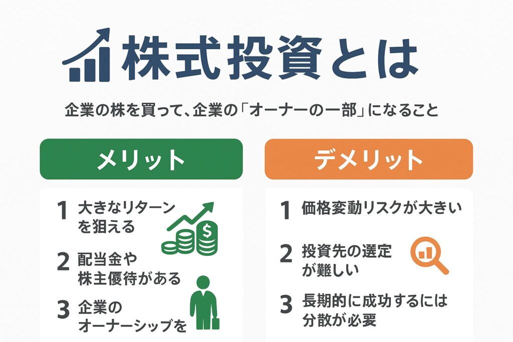 「その気持ち、すごく分かるよ。株式投資は資産形成の代表的な方法だけど、メリットとデメリットを理解してから始めることが大事なんだ。今日は、株式投資の基本・メリット・デメリットを初心者向けに分かりやすく解説するね。」