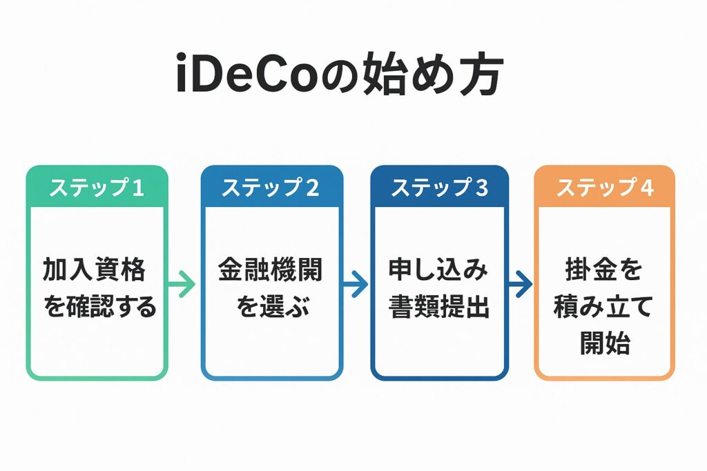 - 始め方は「加入資格確認 → 金融機関選び → 書類提出 → 積立開始」