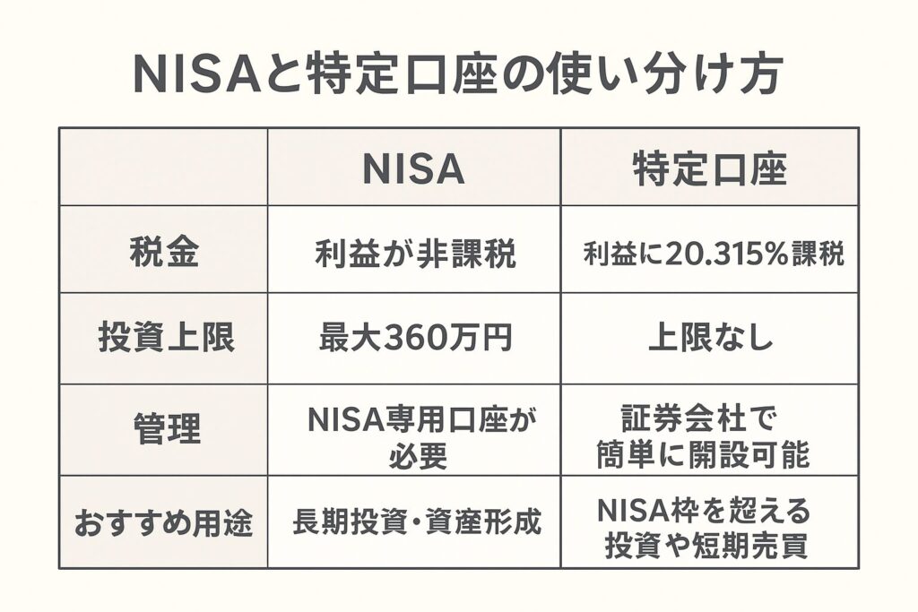 → NISAでコツコツ積み立て、特定口座で余裕資金を運用するのが王道スタイル。